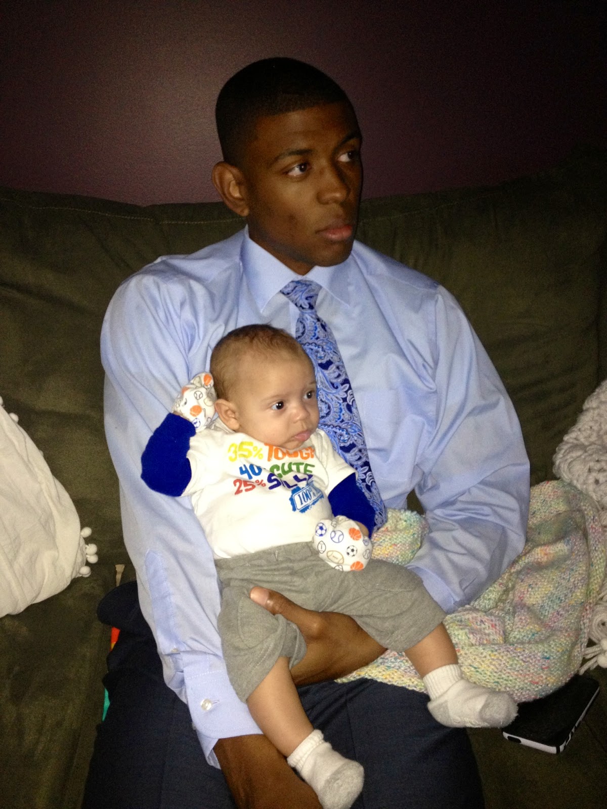 Little Man is already three months (November 2nd) I have no idea how or when this happened. All I can say is that we are so blessed to have such a wonderful little boy. He is still not the best sleeper, but he is getting better, and we are adjusting! Asante started at a new daycare, that we all love! his teacher's name is Ms. Lena, and Asante can't get enough of her! As soon as we get there in the morning, and he hears her voice, he starts looking around for her and smiling. It melts my heart. Dropping him off is so much easier when I feel so good about who is watching him :-) One bad thing about daycare is that all the kids share germs! Asante has had a little bit of a stuffy nose for about a month, and has now developed a cough. Hopefully it goes away on it's own, and for now we are just watching to make sure it doesn't get worse!